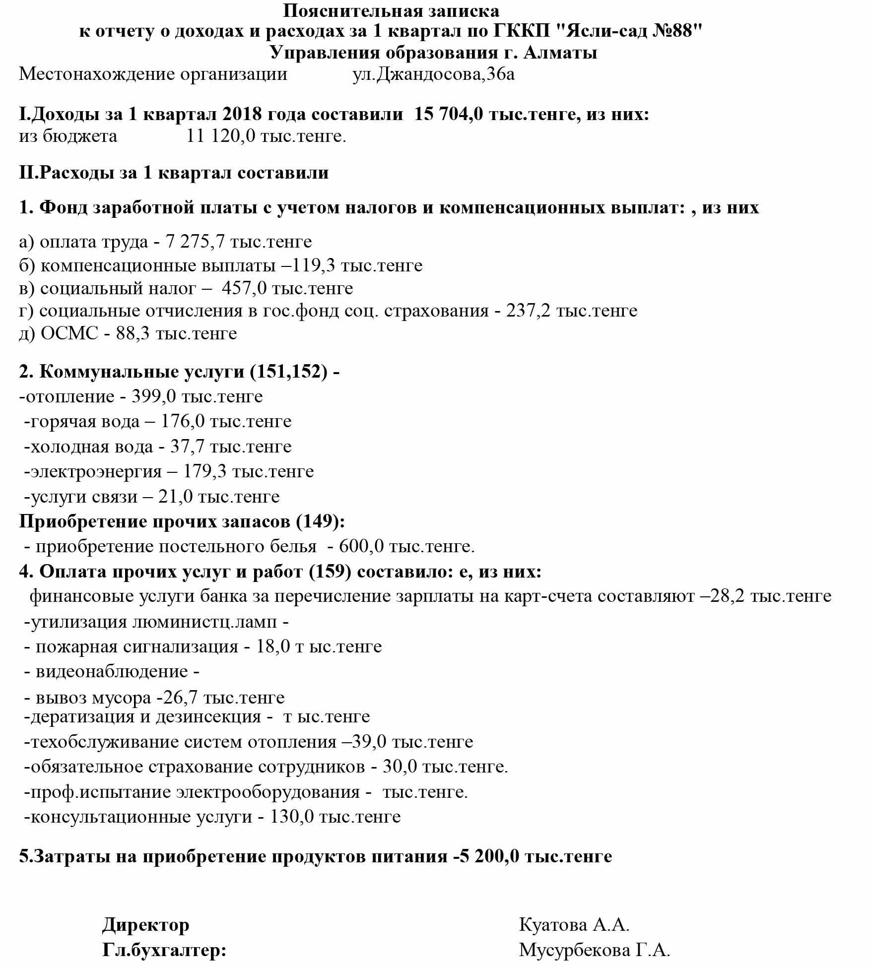 » Отчет о доходах и расходах за 1 кв. 2018 г.